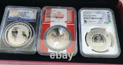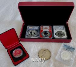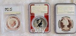 The collection includes six coins. Iii 2017-P Australia Kookaburra One Ounce Silver Dollar PCGS MS70 1 of first 2500 struck. Iv 2000 Isle Of Man Silver Crown Millennium Gilt NGC PF69 Ultra Cameo. Vi 1952 - 1977 Elizabeth II Silver Jubilee Throne of the Senate Proof Silver Dollar. All coins feature Queen Elizabeth II. The 2017 Kookaburra, 2000 Millennium Gilt, an 2022 Maple Leaf come beautifully set in a Royal Canadian Mint display case, while the Silver Jubilee Proof coin comes in its own handsome leather display case. Don't miss this chance to own this stunning collection and carry the tradition of Our beloved Queen.